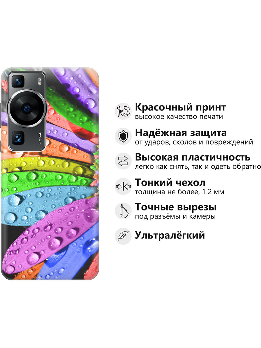 10 цен на Силиконовый чехол на Huawei P60, Хуавей П60 с принтом "Разноцветные листья в каплях"
