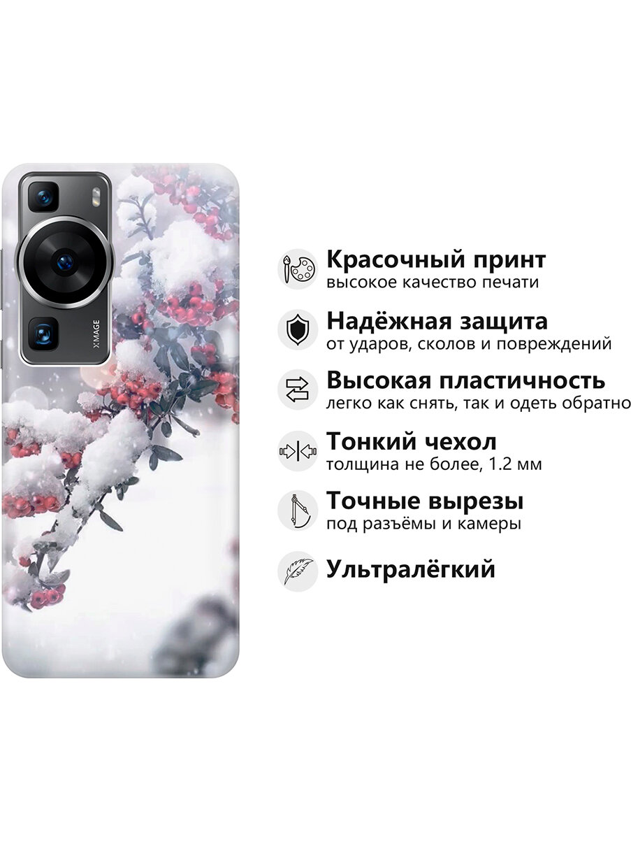 Силиконовый чехол на Huawei P60, Хуавей П60 с принтом "Заснеженная рябина" информация: