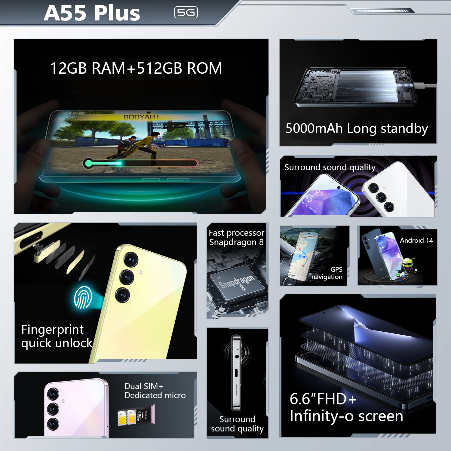 Смартфон A55 Plus 5G 12/512 ГБ Global, Dual nano SIM информация: