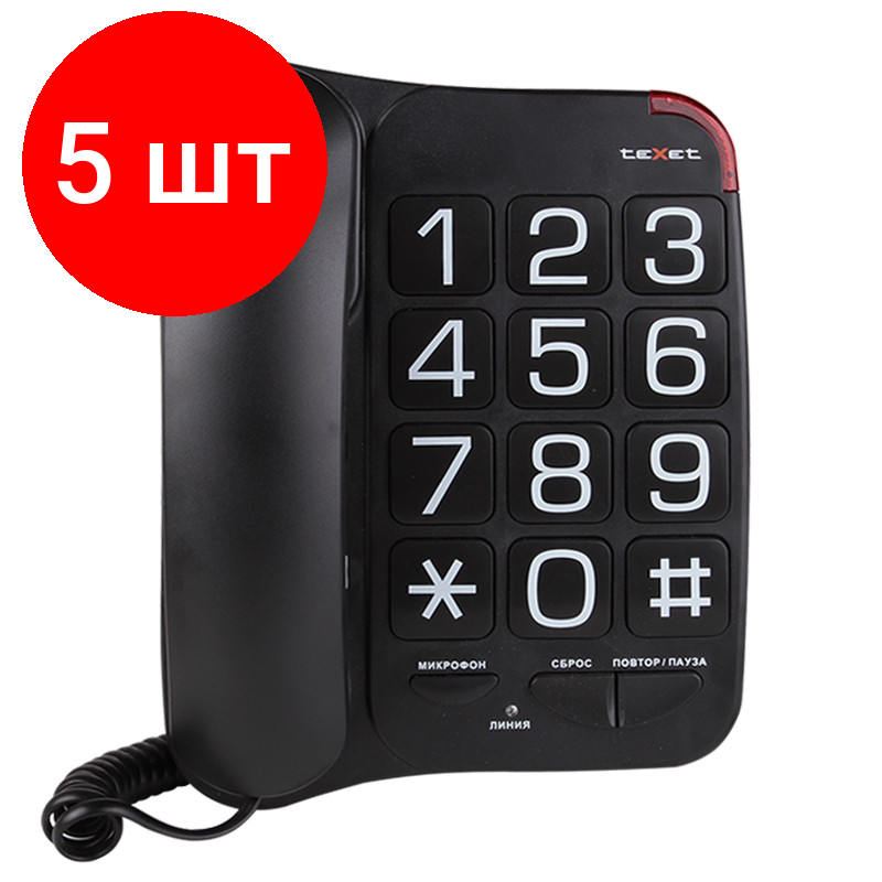 Комплект 5 штук, Телефон проводной teXet TX-201 черный информация: