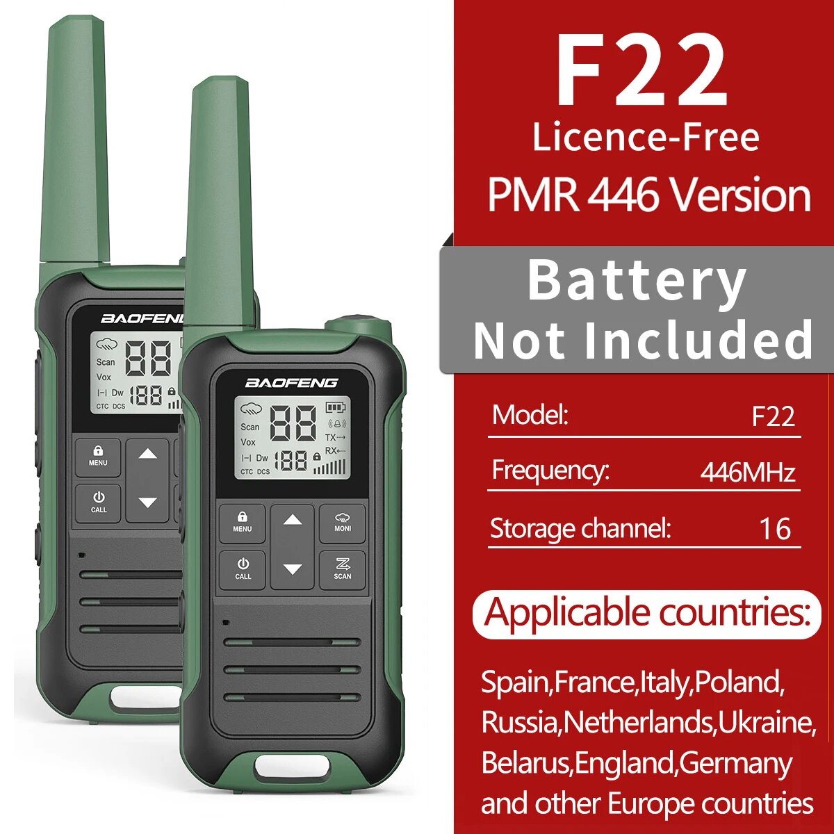2 шт., портативная рация Baofeng F22 PMR446 FRS с ЖК-дисплеем информация: