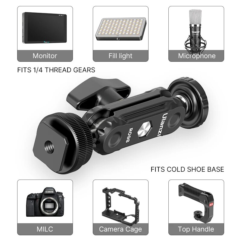 Ulanzi R098 360 ° двойные шариковые головки с креплением холодного башмака для камеры DSLR с винтом 1/4 дюйма для монитора видео освещения информация: