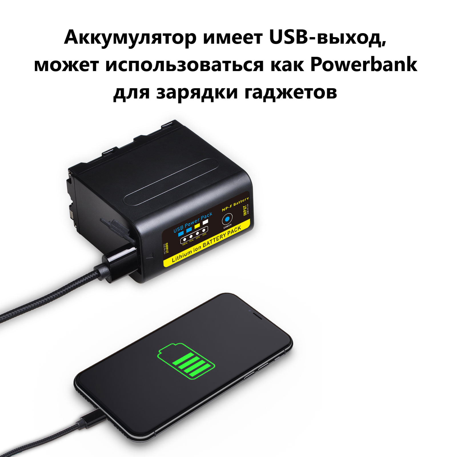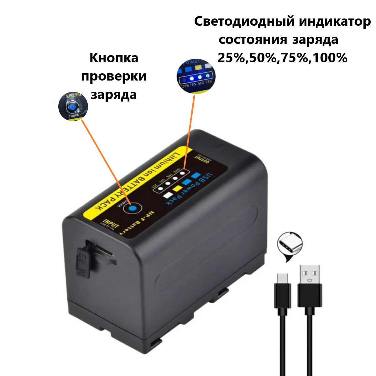Аккумулятор ABC для видеокамер Sony NP-F750, светодиодных осветителей, Power Bank USB-F770C / 6400мАч информация: