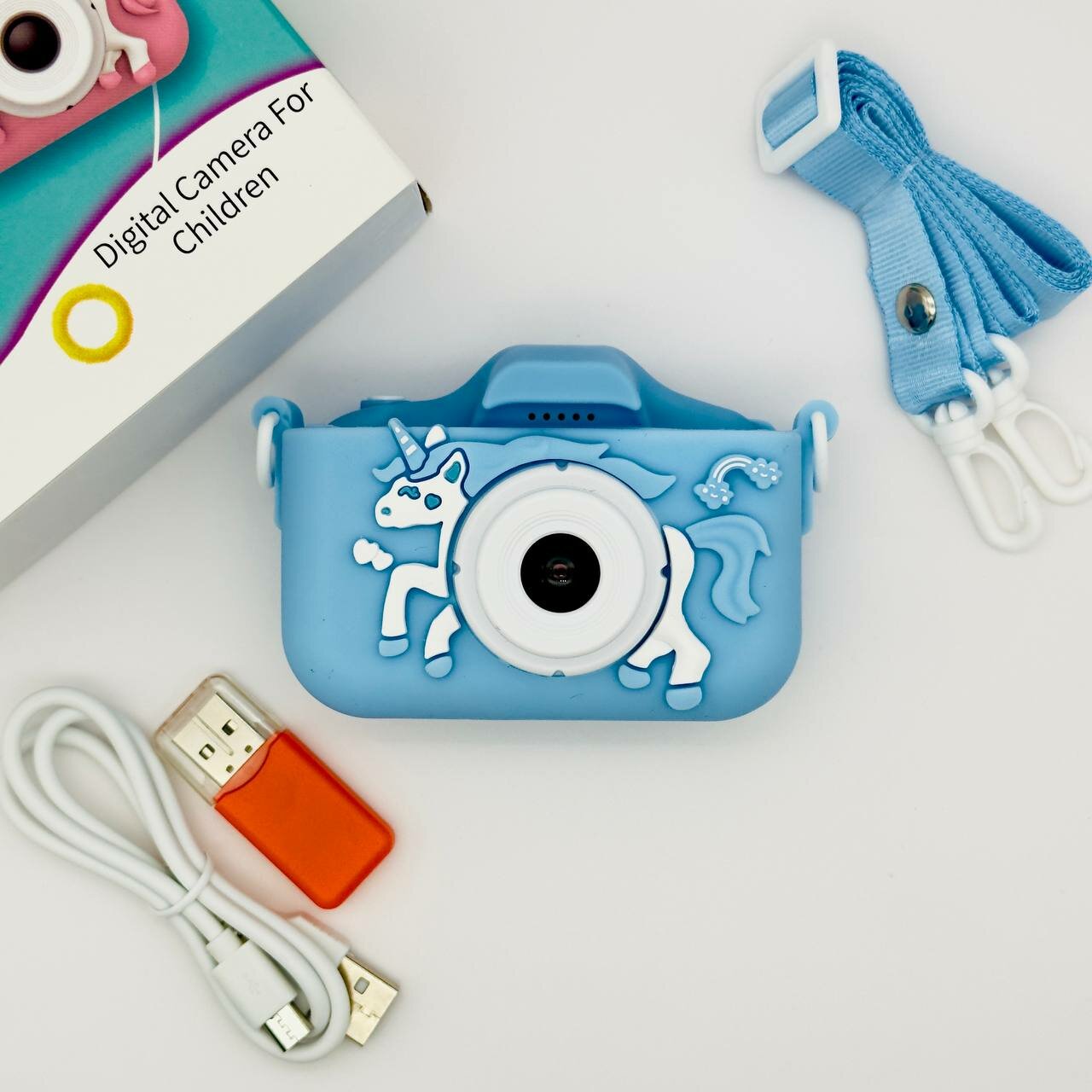 Детский цифровой фотоаппарат с селфи камерой и играми для девочки, мальчика, игрушечная фотокамера для детей ударопрочная 1080p Full-HD, Единорог для ребенка информация:
