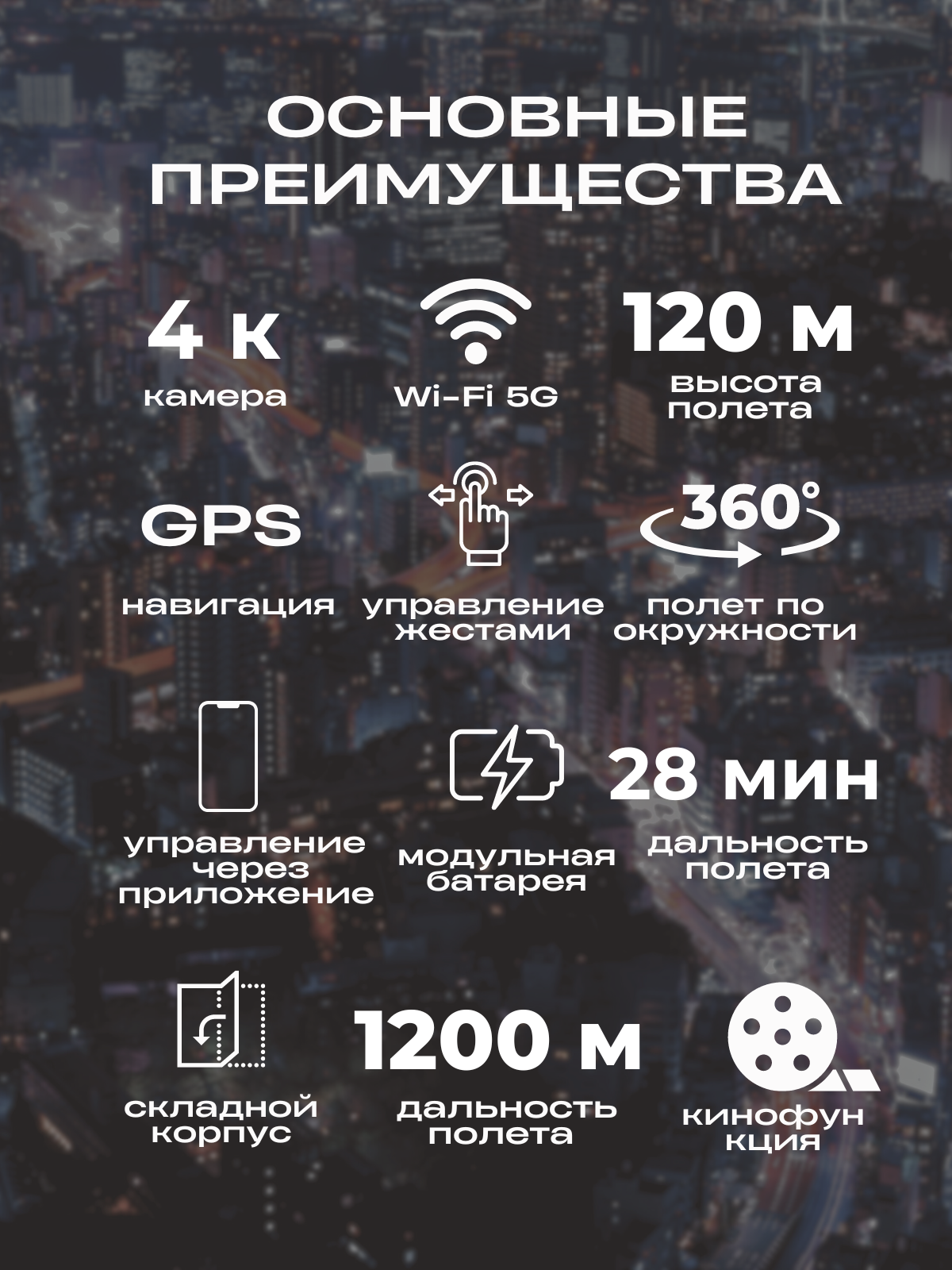 | Дальность управления по Wi-Fi/Bluetooth | 1200 м |
