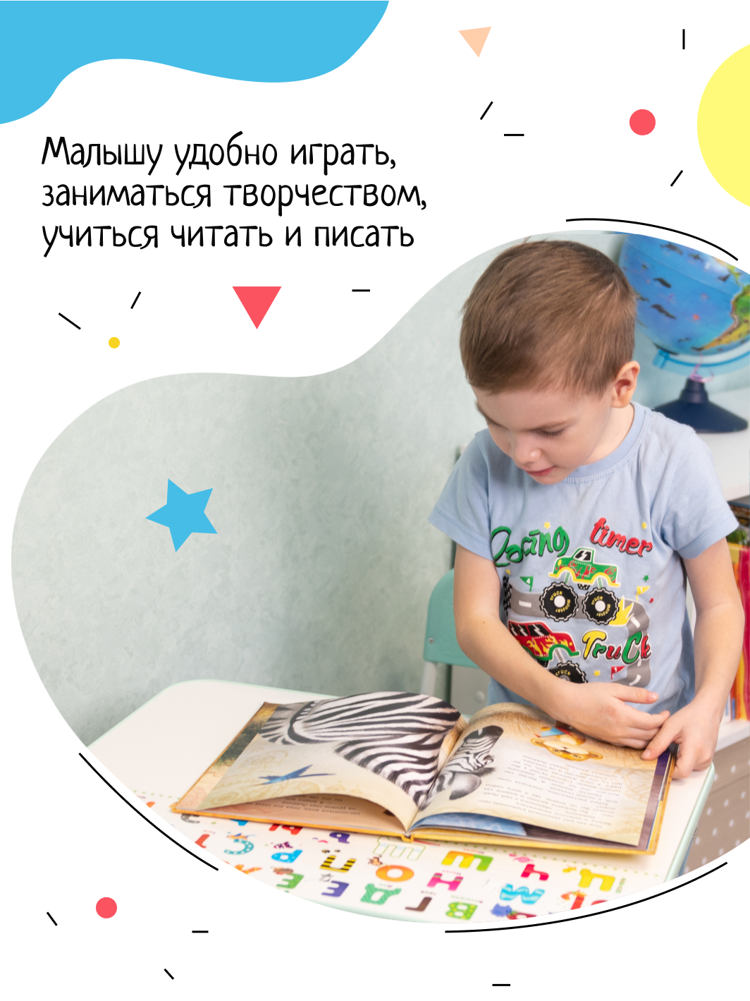 | Дополнительная информация | ламинированная столешница из ДСП с рисунком, на столе можно рисовать маркером на водной основе |