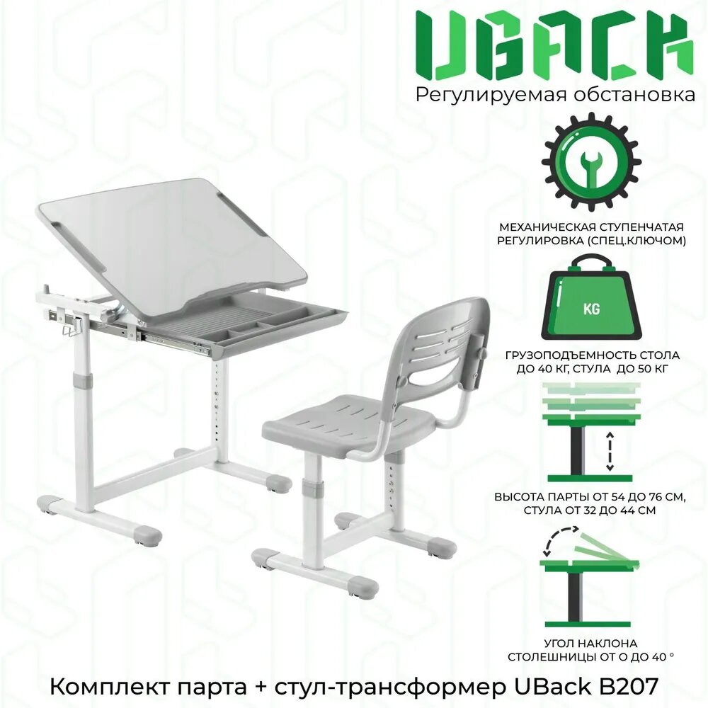 UBack B207 Комплект парта + стул-трансформер с регулировкой высоты и наклона, 66.4х47.4х76 см информация: