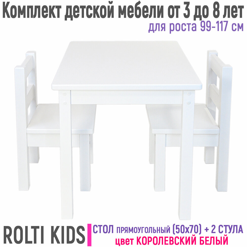 Детский стол и два стула деревянный прямоугольный 70х50, Rolti Kids, белый информация: