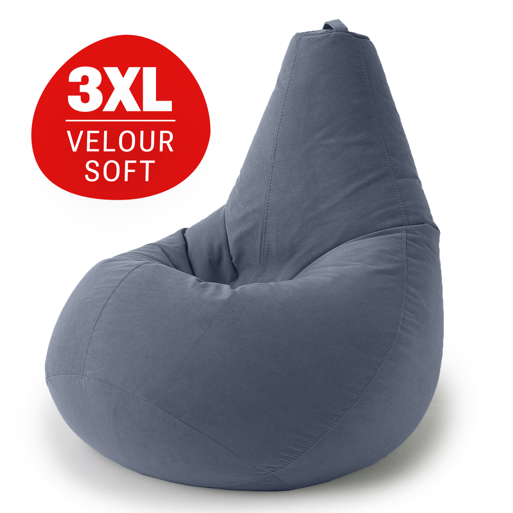 Мир Пуффов Кресло-мешок «Груша» Велюр синий XXXL, съемный чехол на молнии
