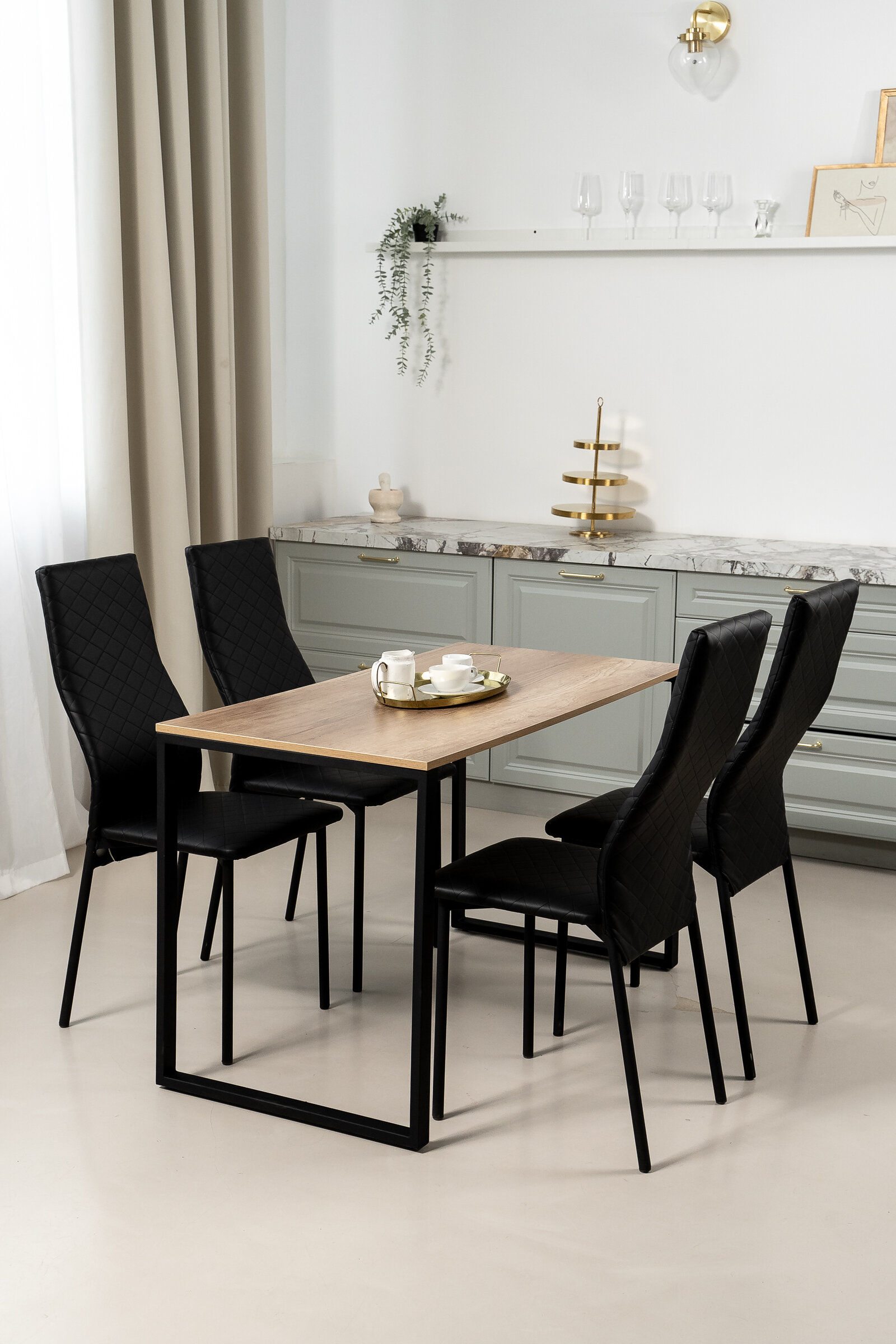 Обеденная группа Стол и 4 стула, стол «дуб Каньон» 120х60х75, стулья Черные, искусственная кожа 4 шт. информация:
