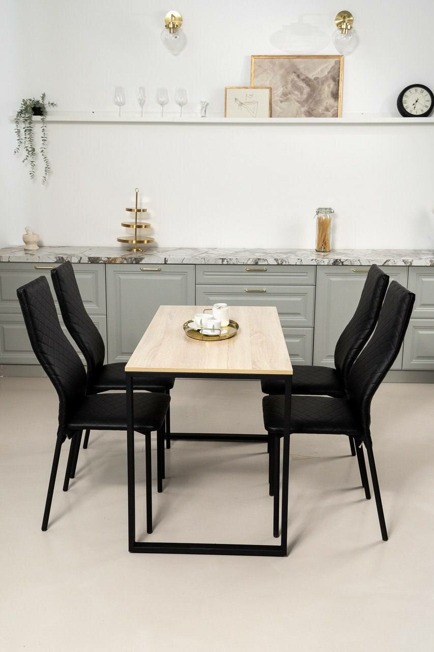 Отзывы на Обеденная группа Стол и 4 стула, стол «Дуб Сонома» 120х60х75, стулья Черные искусственная кожа 4 шт.