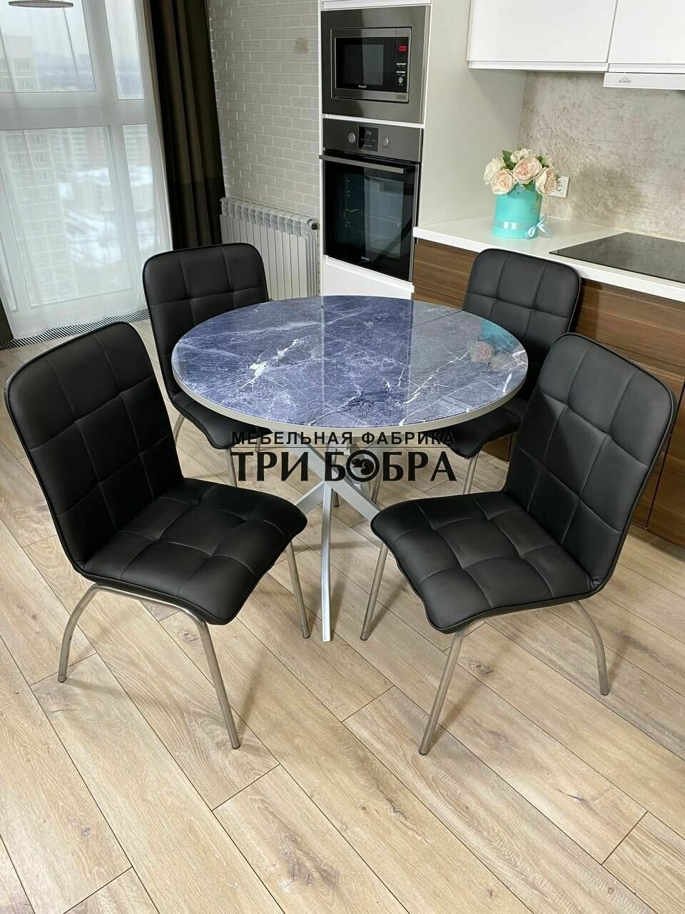 Отзывы на Стол кухонный круглый, раздвижной, стеклянный, Серый мрамор, стулья для кухни комплект 4 шт