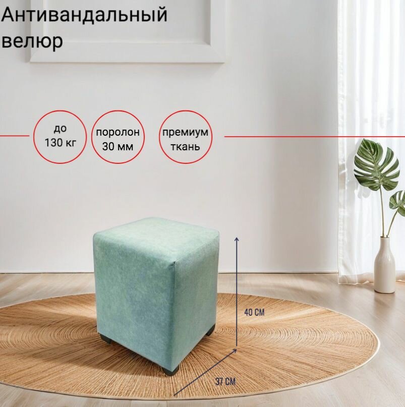 Пуфик бирюзовый, Велюр Бархатный, 37х37х40 см информация: