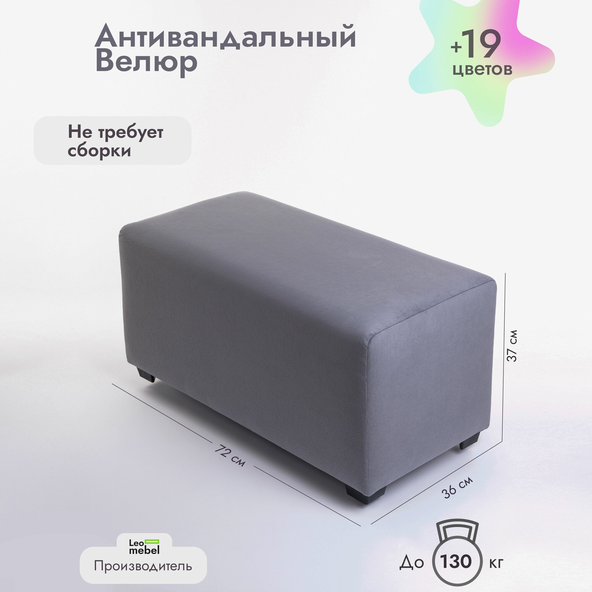 Банкетка в прихожую Леомебель большая велюровая 72x36x37 Серый информация: