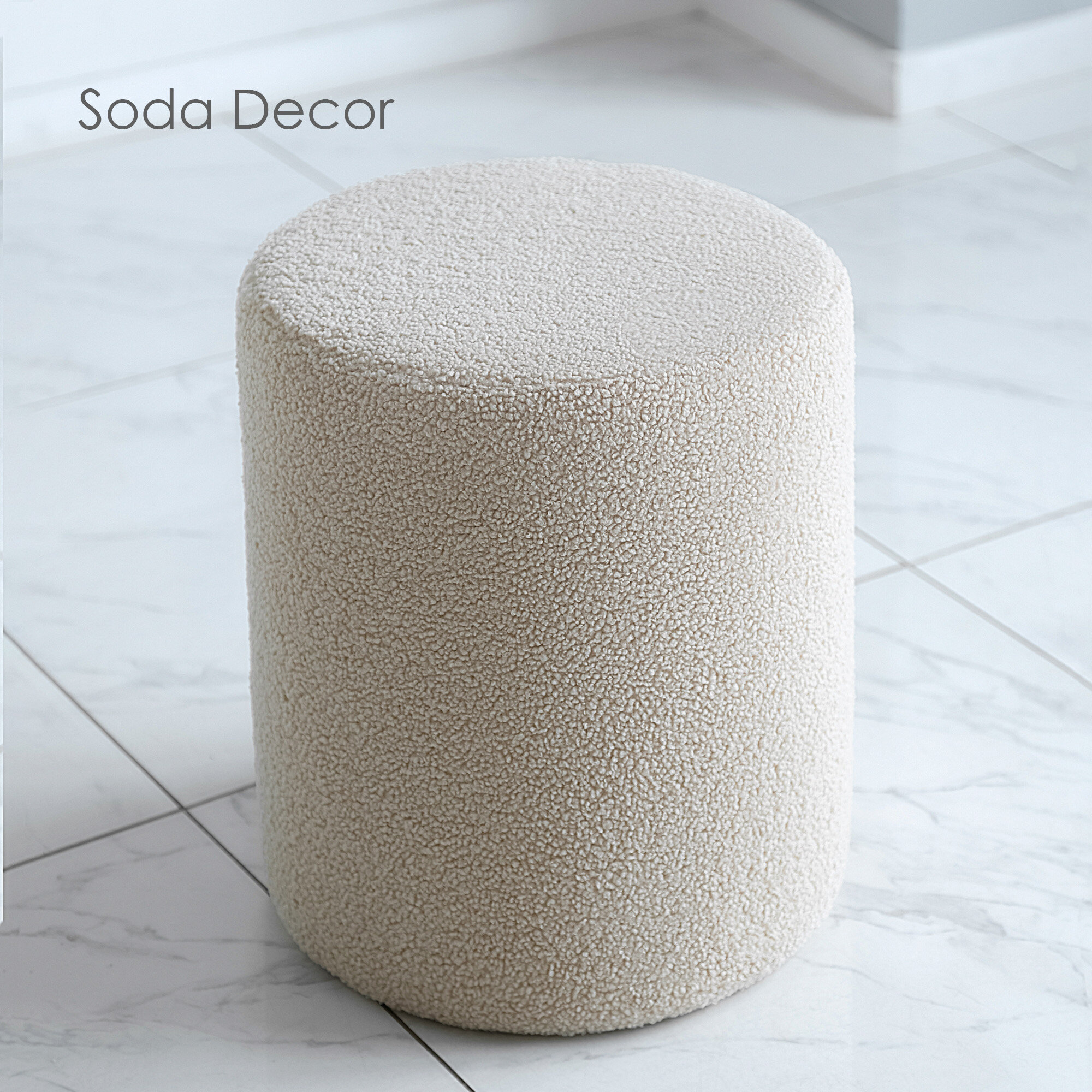Пуфик в прихожую и спальню, для туалетного столоки, букле, барашек, soda decor, бежевый 3 840 ₽