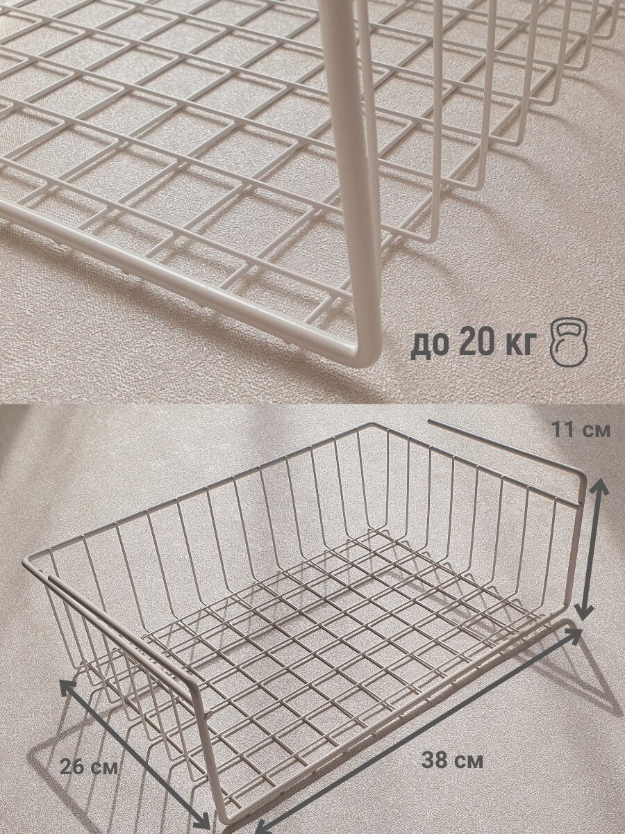 Корзина полка навесная в шкаф, размер 40х26х11 см, цвет белый информация:
