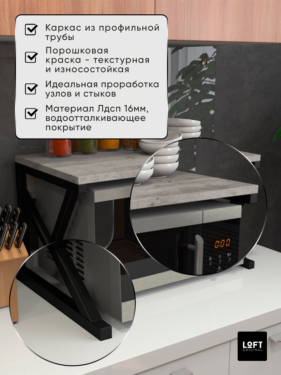 Полка для микроволновки настольная лофт серая /Этажерка для ванной /Держатель для специй и круп / 54 см х 35 см х 31,6 см 3 574 ₽