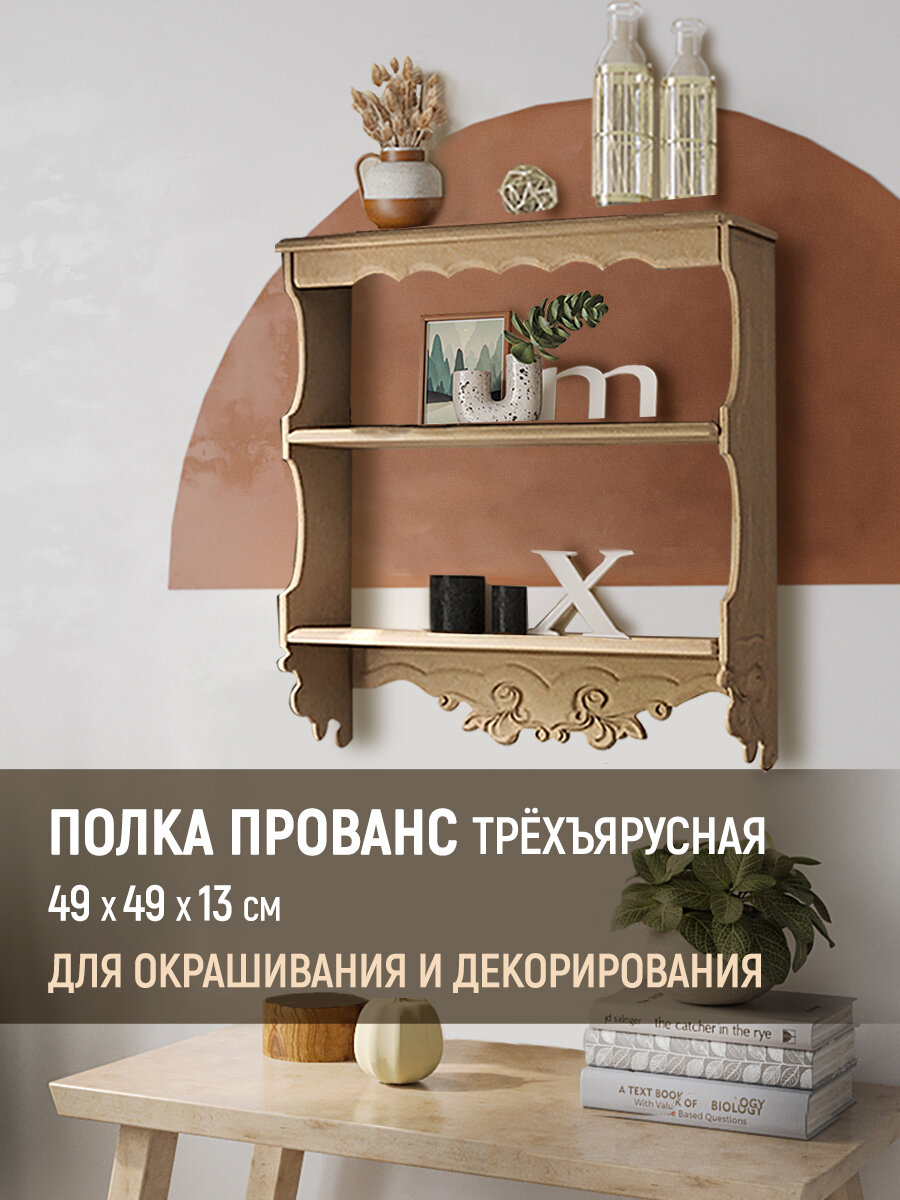 Полка "Прованс" - трехъярусная, с резным узором, 49x13x49 информация: