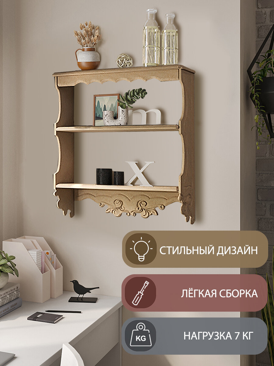 10 цен на Полка "Прованс" - трехъярусная, с резным узором, 49x13x49