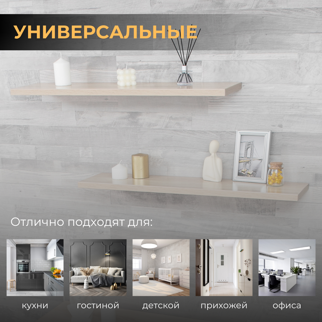 | Назначение | для гостиной/спальни / для детской / для икон / для книг / для кухни / для прихожей / для роутера / для специй / для фоторамок и сувенирной продукции / универсальное |