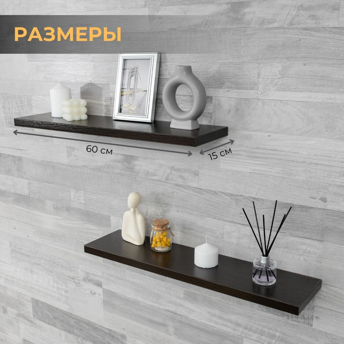 Полка настенная прямая навесная, со скрытым монтажом 2 шт, венге, 60х15 информация: