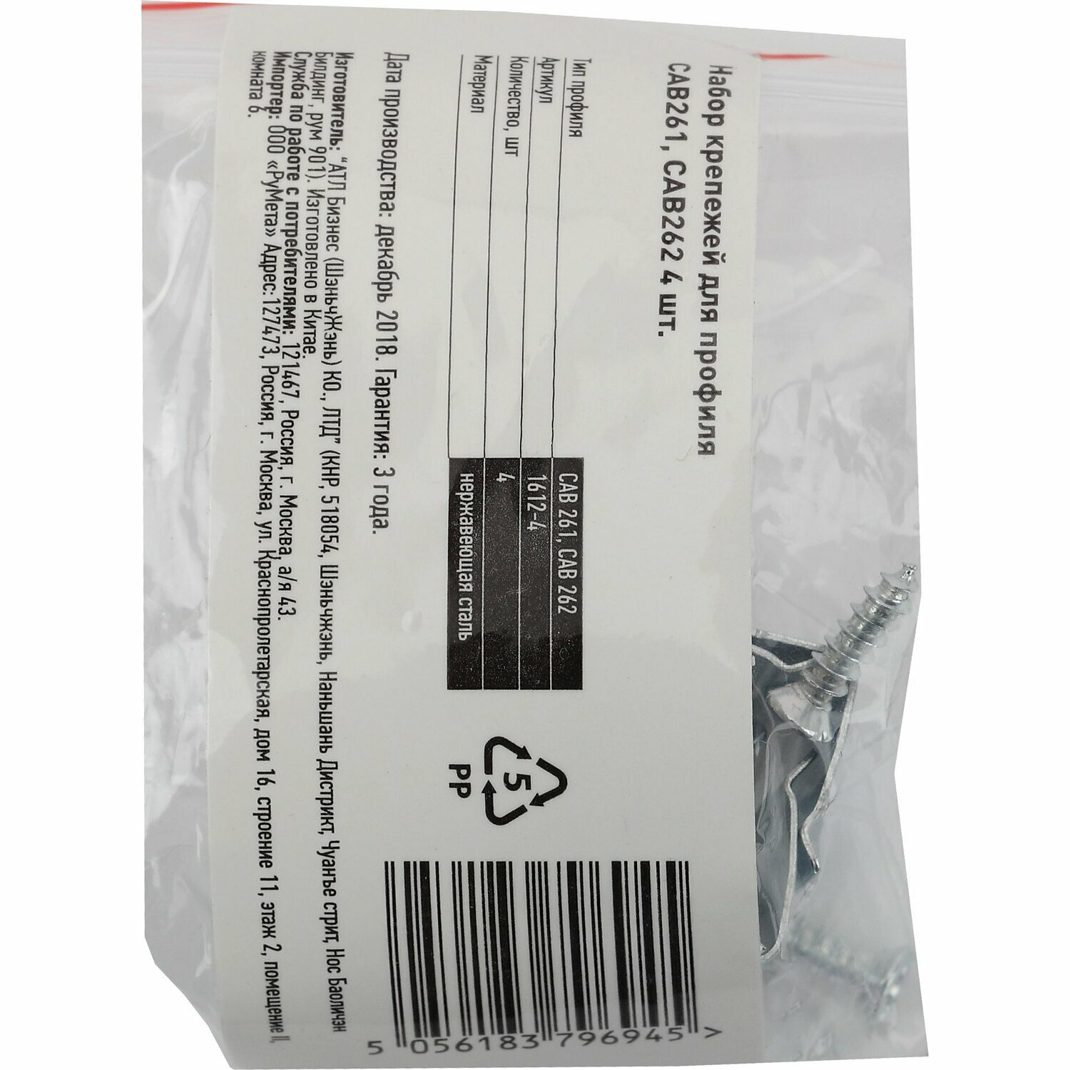 Набор крепежей для профиля CAB261, CAB262 ЭРА 1612-4 информация: