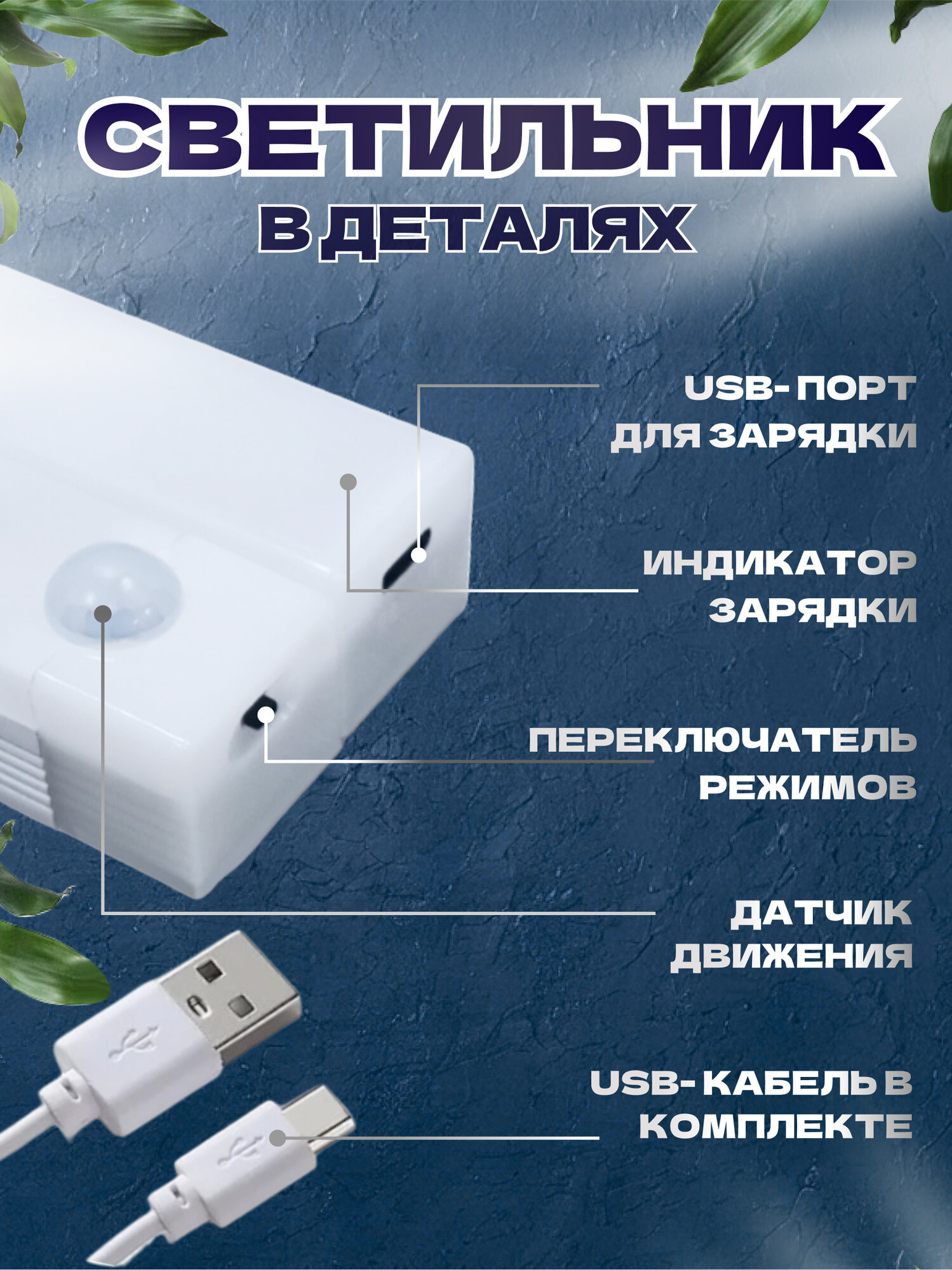 Беспроводной светильник холодный с датчиком движения 50см информация: