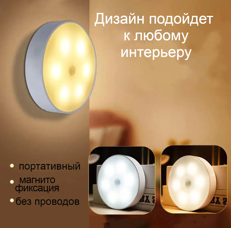 Магнитный светильник VVO с датчиком движения без проводной USB заряд , 2 режима холодный/теплый информация: