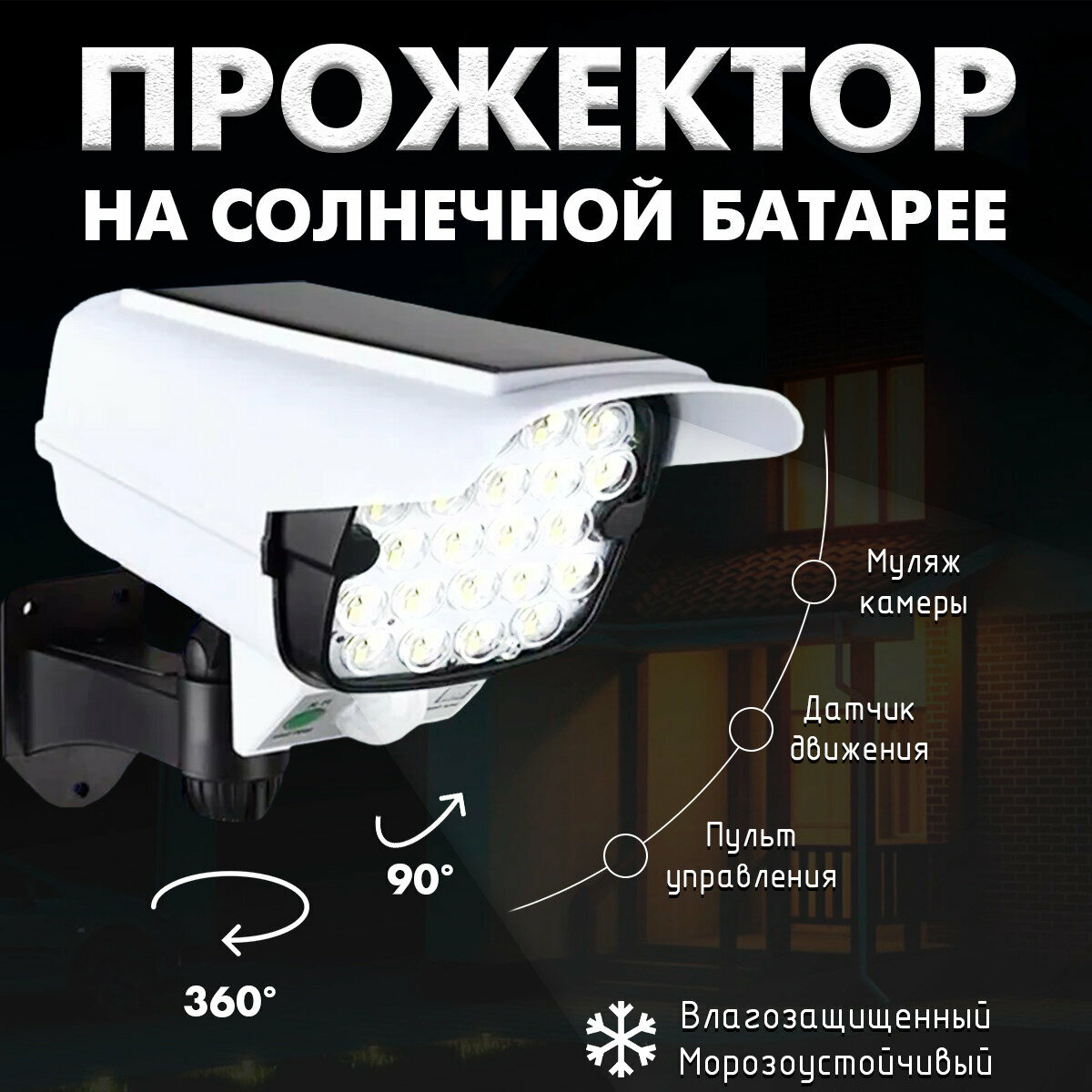 Уличный светильник прожектор 66LED MyLatso с датчиком движения и солнечной батареей на аккумуляторе, лампа муляж видеокамеры наблюдения информация: