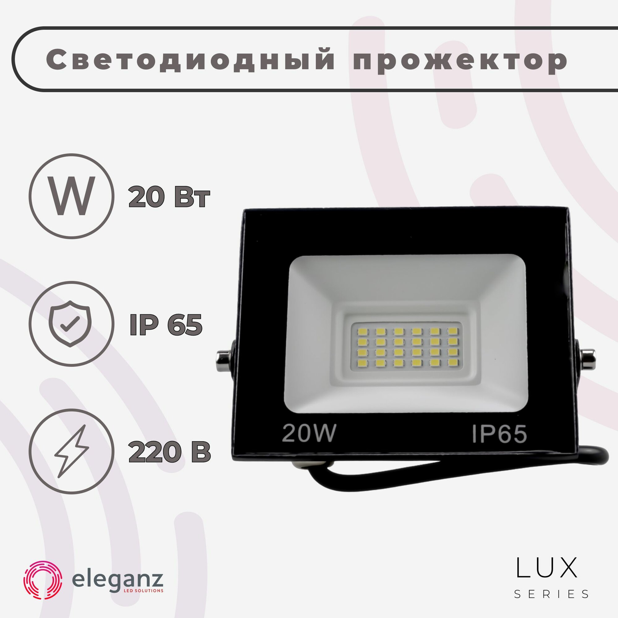Отзывы на Прожектор светодиодный уличный "Eleganz 20Вт" от сети 220В, со степенью защиты IP65, алюминий, 1900Лм, 6000К, холодно-белого света