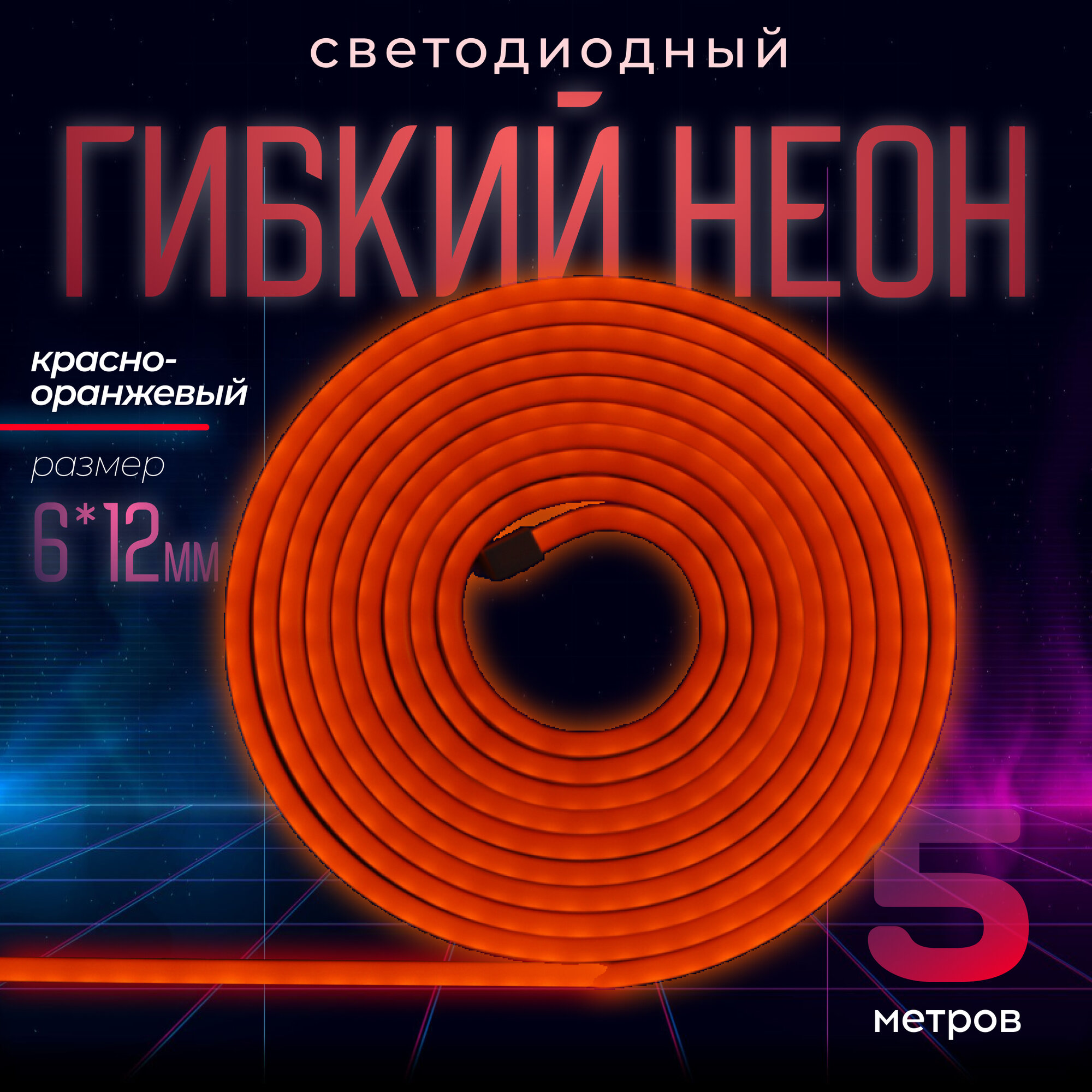 10 цен на Светодиодный гибкий неон 5 метров 12В, размер 6х12мм, цвет оранжевый