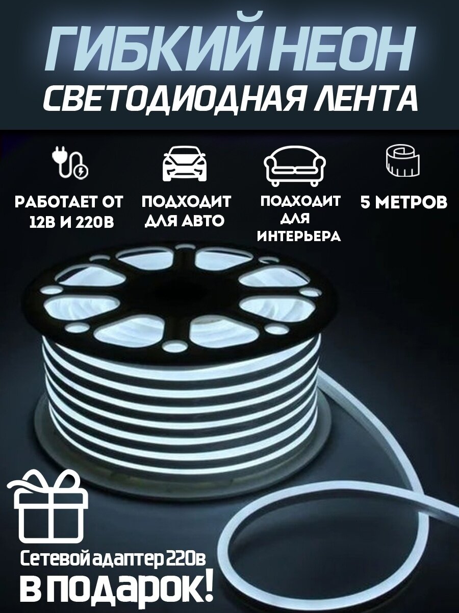 10 цен на Светодиодная лента SmartElectronics 5м, 220В, IP67, 120 LED/m Гибкий неон 5 метров, неоновая RGB лента, подсветка интерьера/Белый
