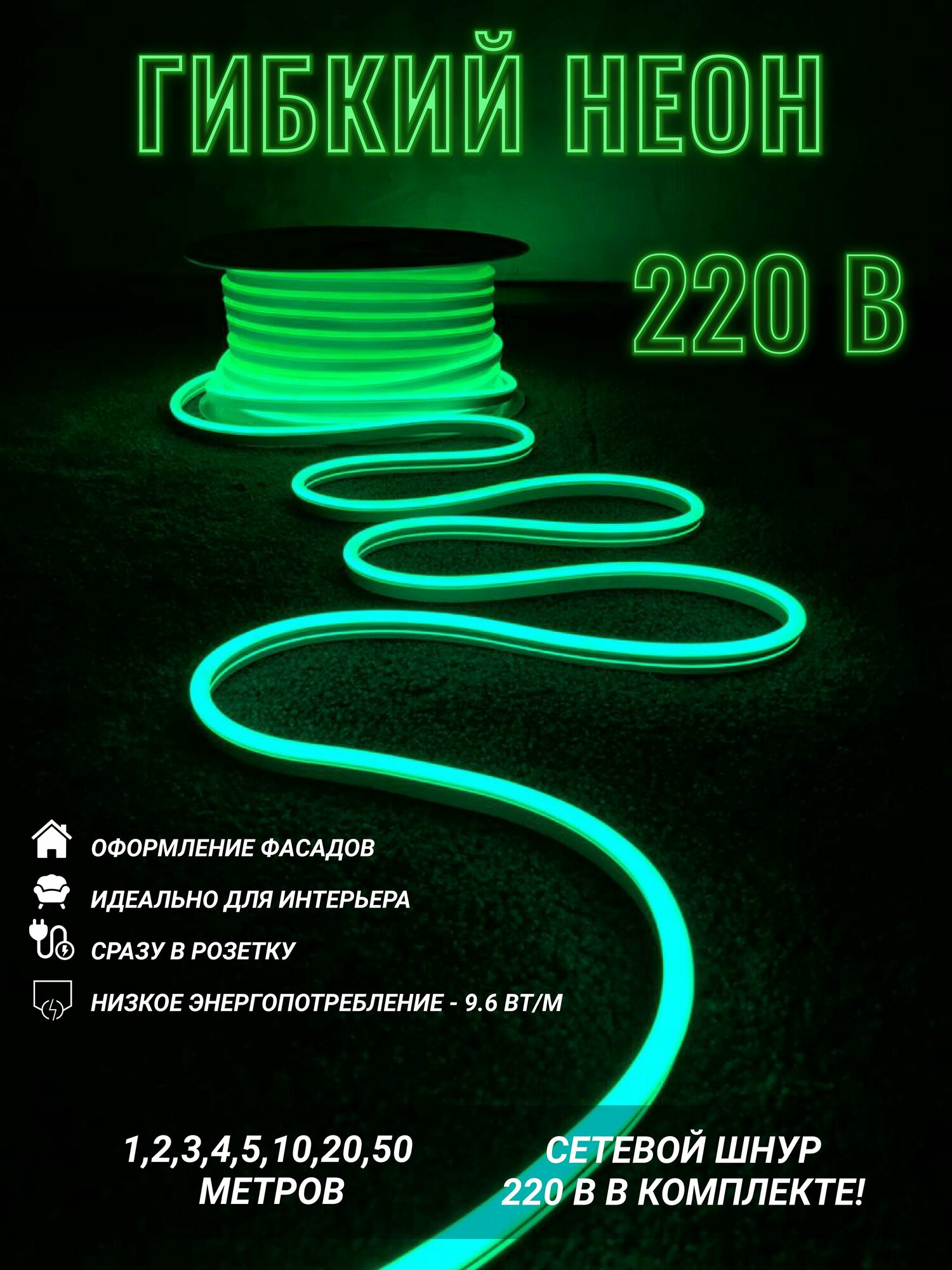 10 цен на PJ Neon, Интерьерная неоновая светодиодная лента для улицы и помещения - гибкий неон 2м, 8х16мм, 220В, 120 LED/m, IP 67, зеленый
