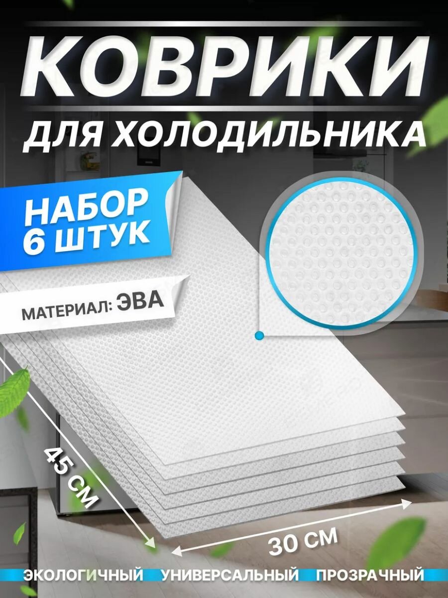 10 цен на Коврик для кухонных полок 6 шт Белый / Прозрачный, ящиков, холодильника, 45х30 см