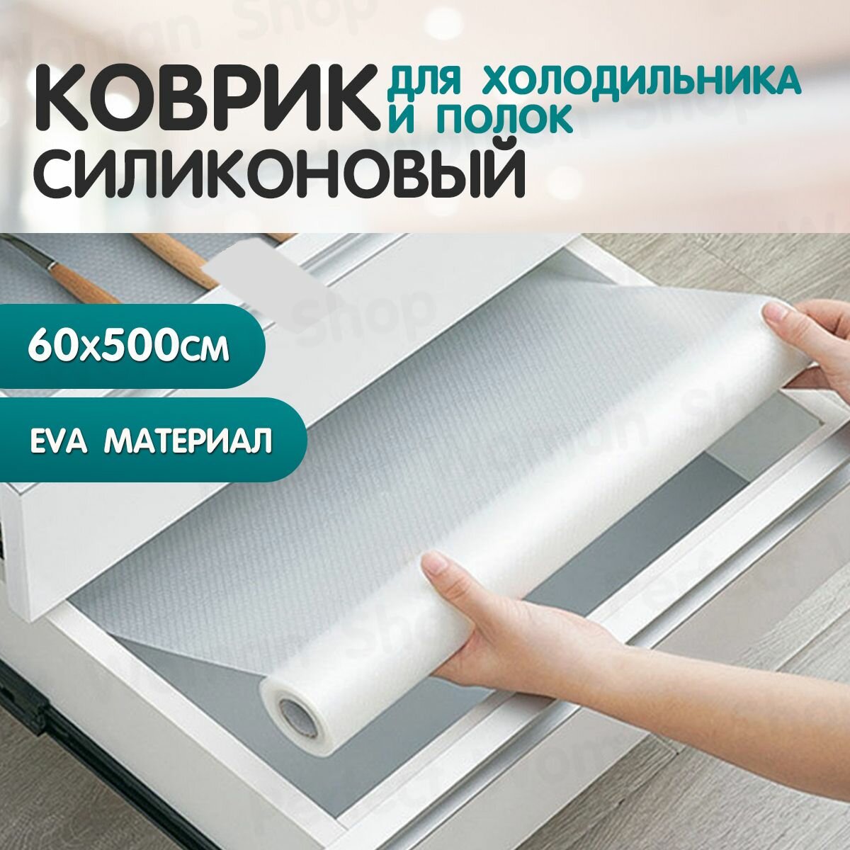 Силиконовый коврик для холодильника кухонных полок ящиков антискользящий в рулоне 60см 500см информация: