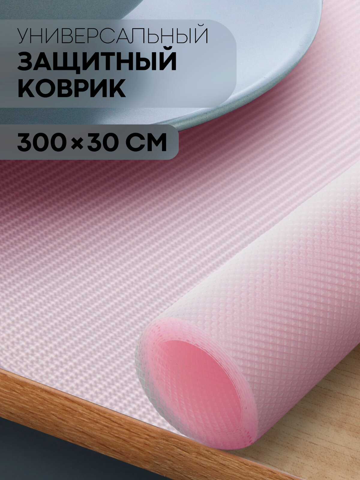Противоскользящий ПВХ коврик для кухни водостойкий 300х30, бренд Картофан, розовый информация: