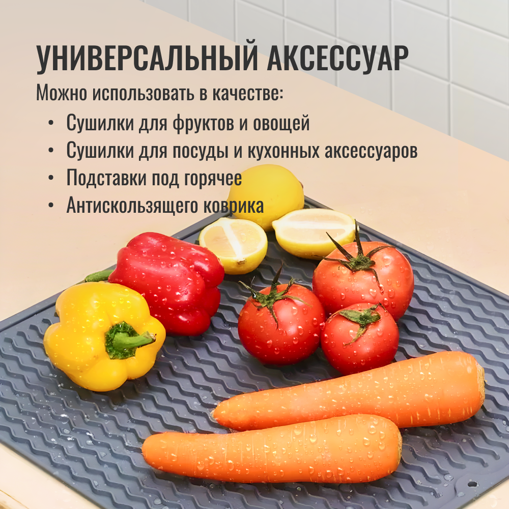 Силиконовый коврик для сушки посуды ZDK Homium, сушилка для посуды на кухню Волна (серый) информация: