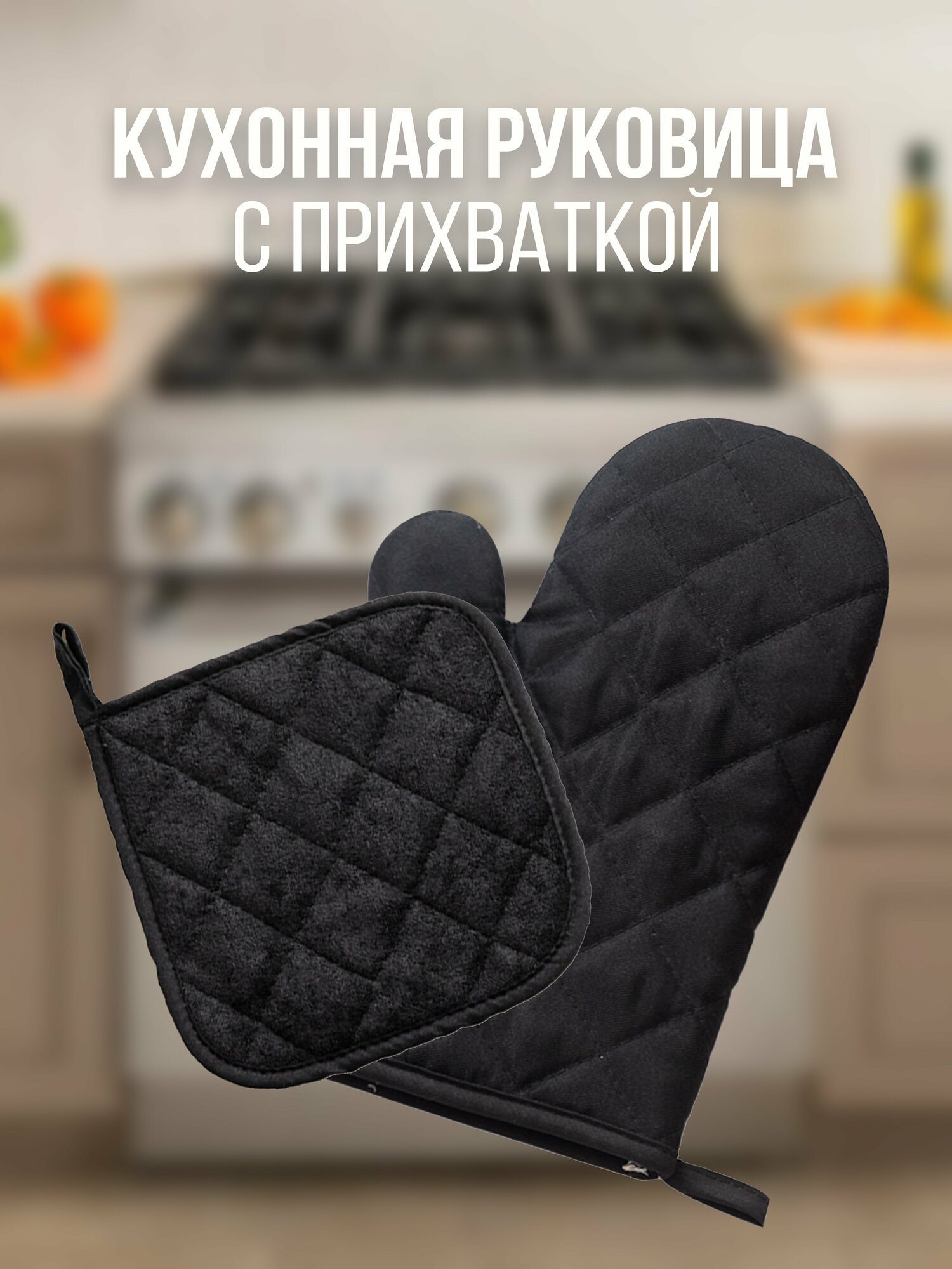 10 цен на Прихватки для кухни с рукавичкой, набор 2 шт (Черный)