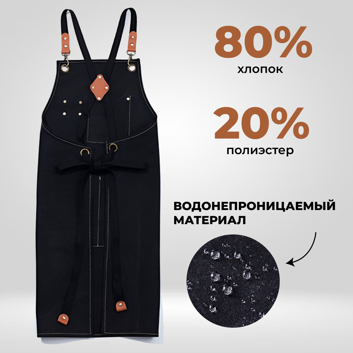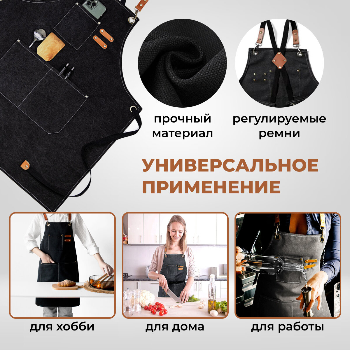 Отзывы на Фартук джинсовый универсальный водоотталкивающий черный для повара, бармена, творчества, бариста, официанта, барбера, Zur-Kibet