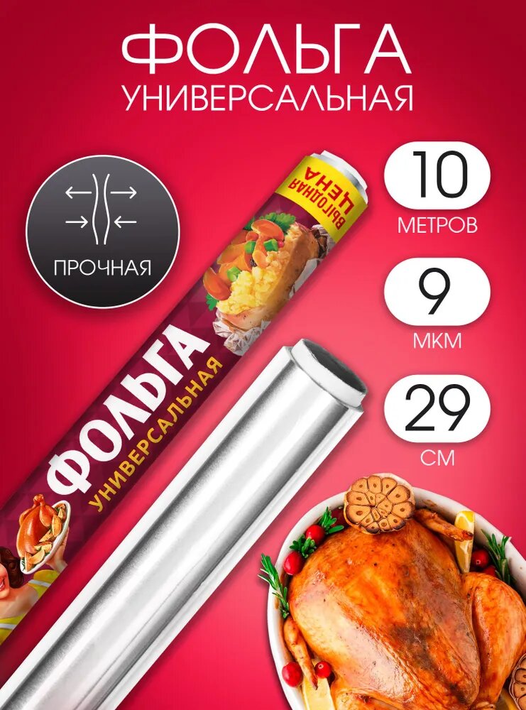 10 цен на Фольга пищевая для запекания прочная Саяночка, 10 м х 29 см, 9 мкм