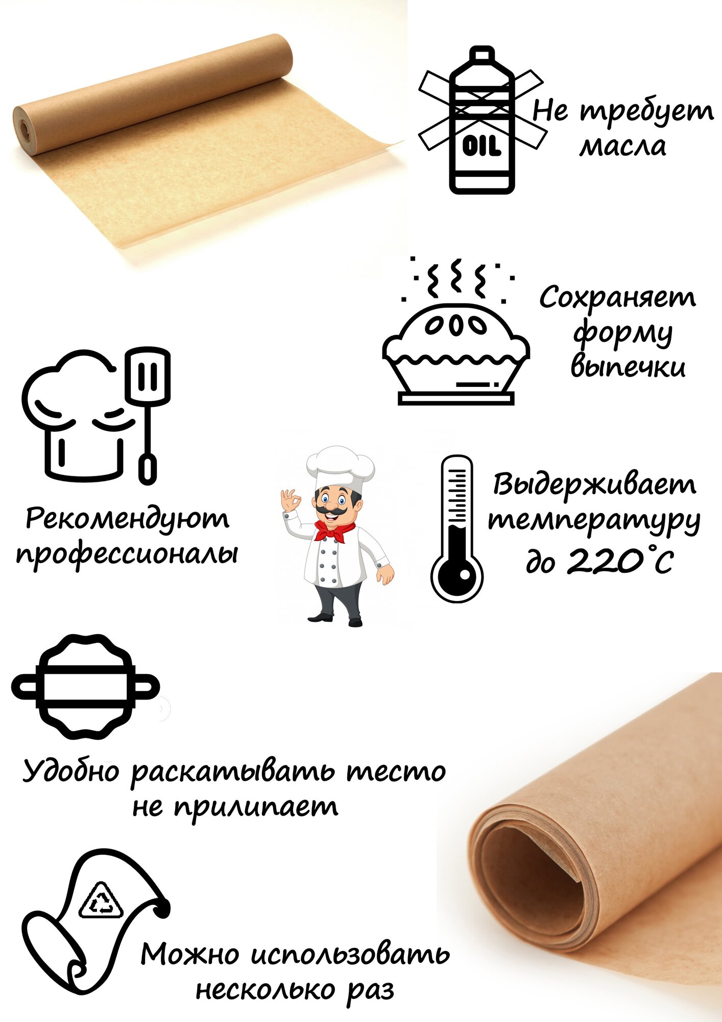 Бумага для выпечки силиконизированная Gurmanoff 8м х 38см многоразовая крафт / пергамент