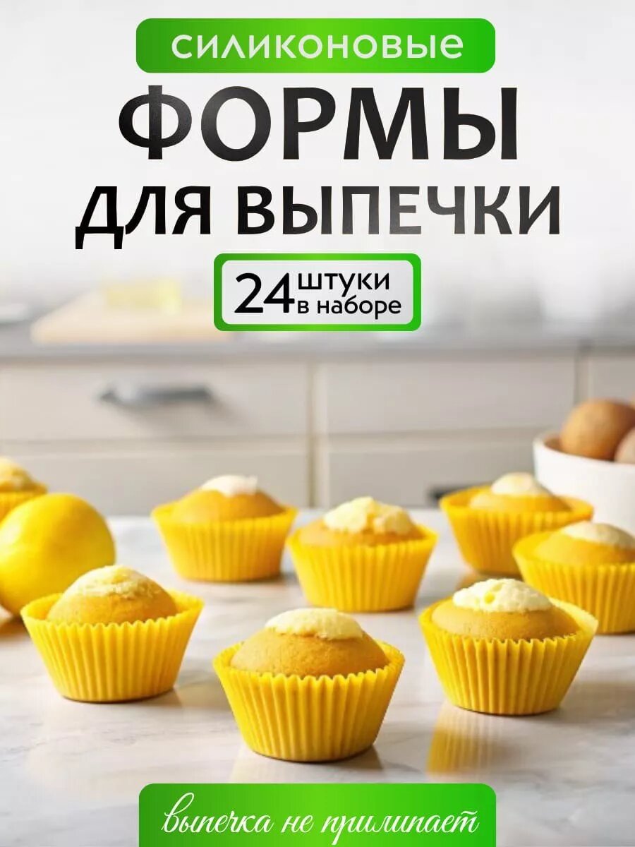 Формы для выпечки кексов, маффинов силиконовые 24шт жёлтые информация: