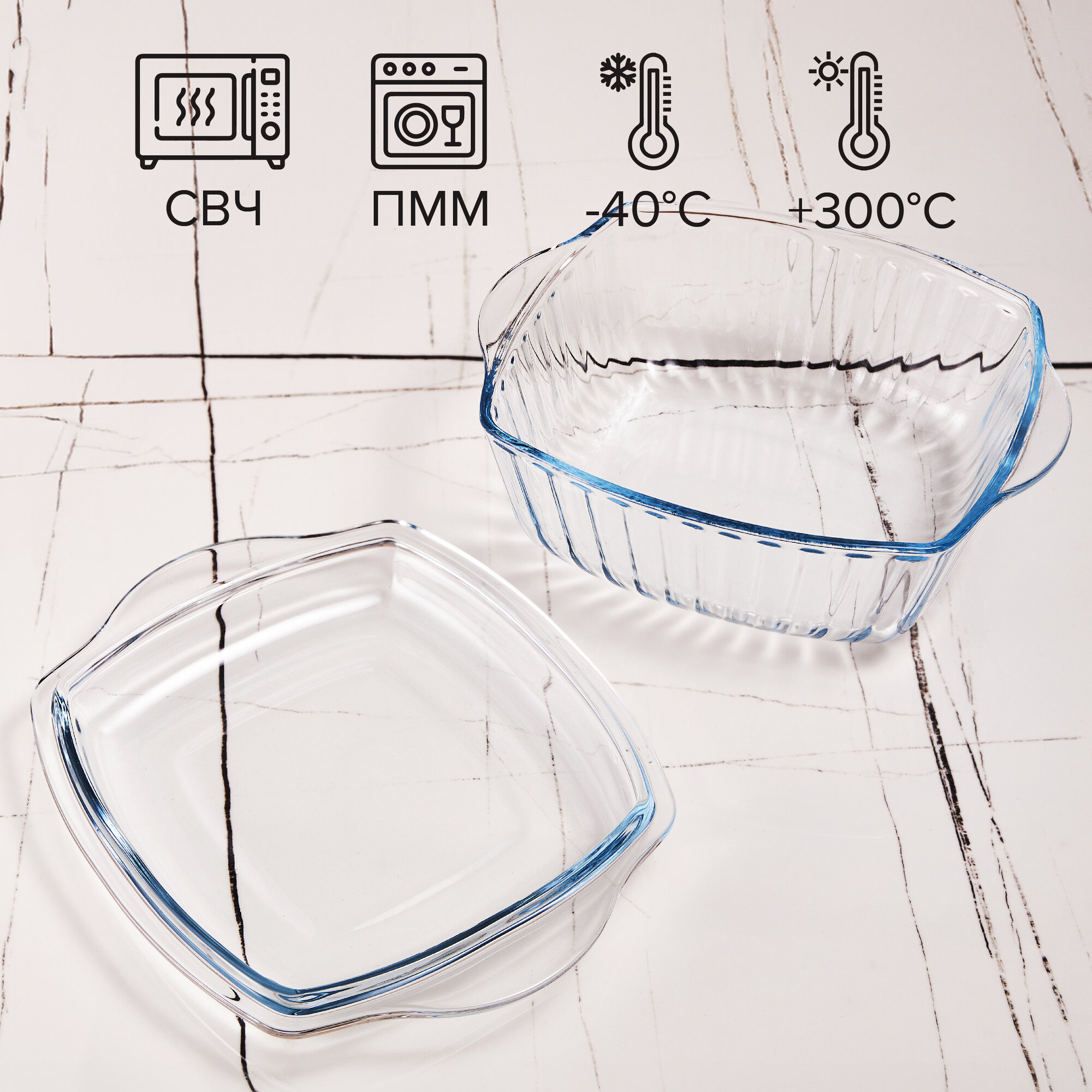 Стеклянная форма для запекания жаропрочная квадратная 1.95 л 1 000 ₽