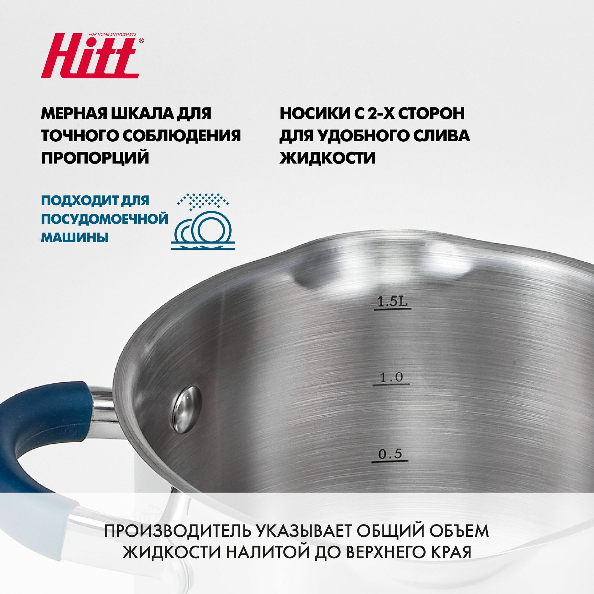 | Особенности | мерная шкала / мытье в посудомоечной машине / с крышкой / термоизолированная ручка / толстое дно |