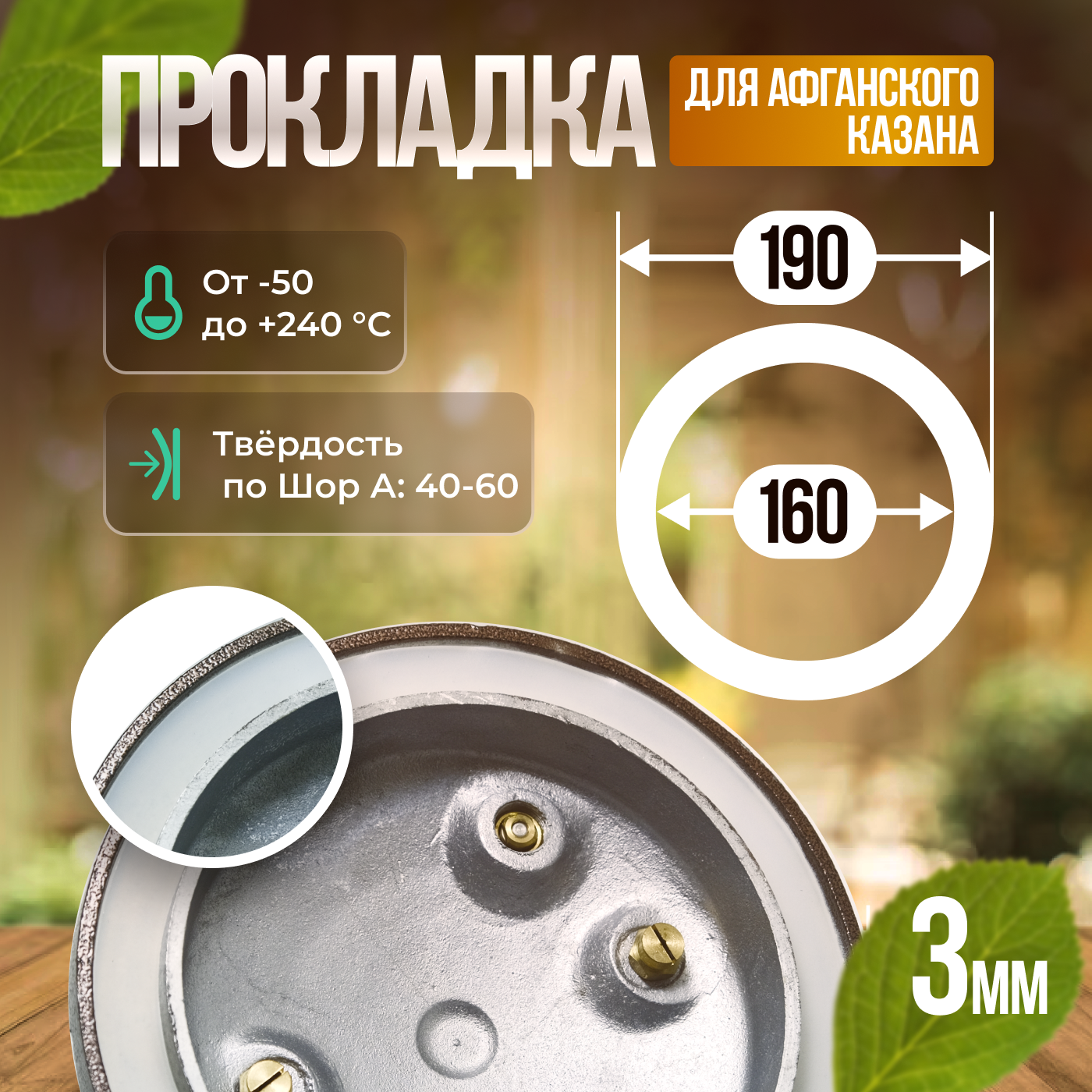 Прокладка для афганского казана 10л, 12л, 15л, 20л, 30л/ силиконовая резинка прокладка / Уплотнитель/190х160х3мм информация: