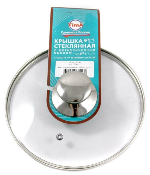 Отзывы на арт.5720 Крышка TimA стекл. с круглой НЖС ручкой с метал/обод 20 см низ.