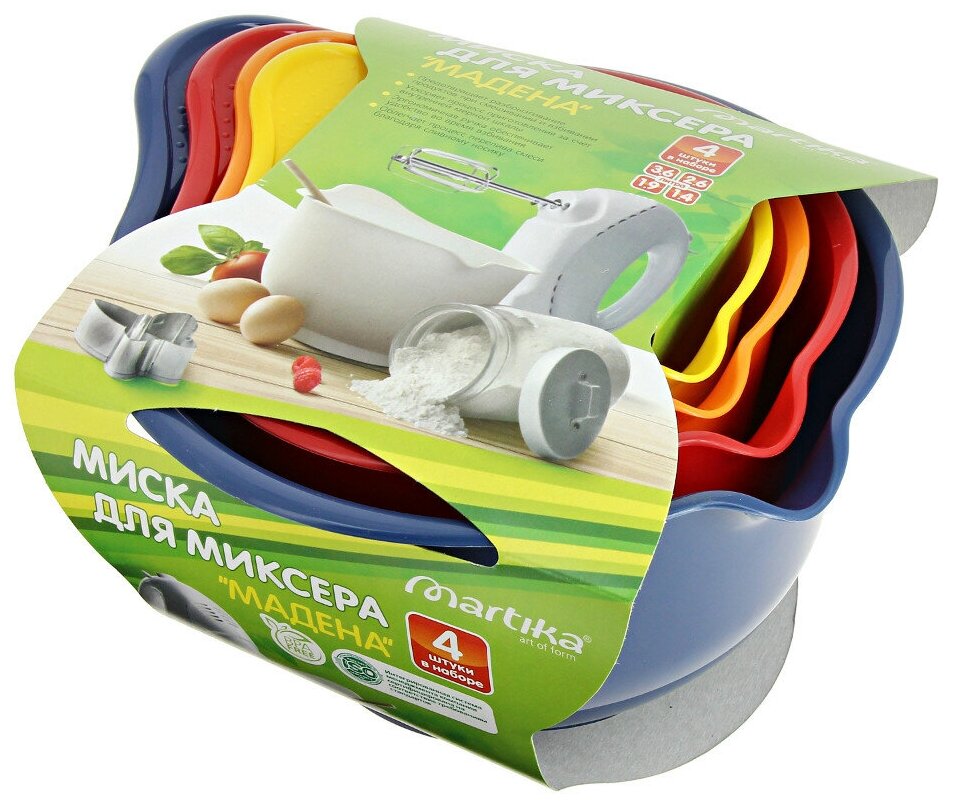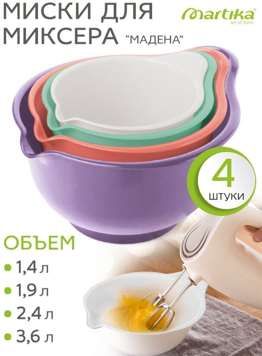10 цен на Миска пластиковая для миксера «Мадена» в наборе 4 шт. (1,4л; 1,9л; 2,6л; 3,6л) С439