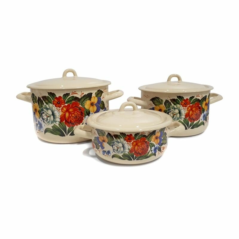 Набор эмалированных кастрюль 1,45л,2,9л,4,3л Анютины глазки Лысьвенские эмали
