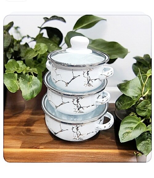 Набор кастрюль эмалированый "Белый Мрамор" информация: