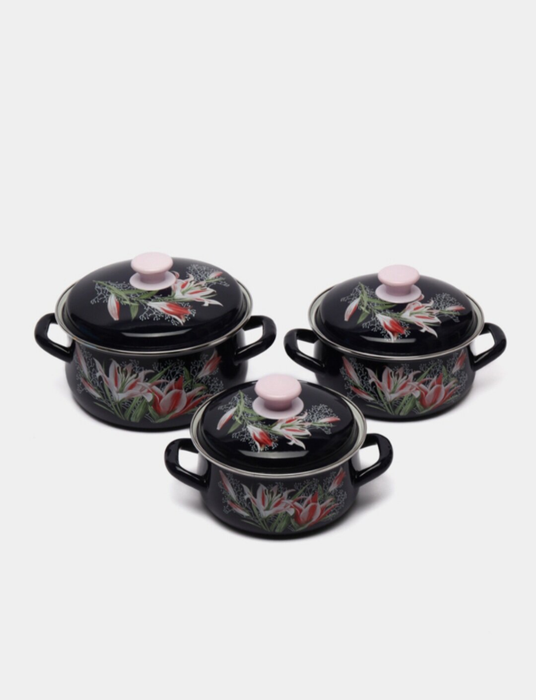 Набор кастрюль Сибирские товары Пионы, эмалированные, 2, 3 и 4 л